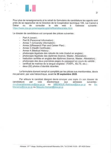 Cette bourse d’excellence représente une occasion unique pour les jeunes professionnels sénégalais de renforcer leurs compétences, d’élargir leurs perspectives académiques et de contribuer activement au développement du pays.
